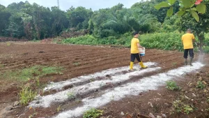 Tana Tidung-Kapolsek bersama personel Polsek Sesayap Hilir melaksanakan kegiatan pemupukan lahan pertanian yang telah siap tanam sebagai bentuk dukungan terhadap