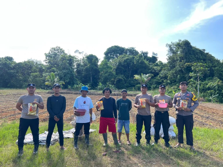 Sesayap Hilir – Dalam rangka mendukung program ketahanan pangan nasional, Kapolsek Sesayap Hilir bersama personel Polsek dan Kelompok Tani (Poktan)
