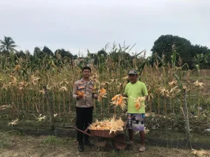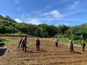 TANA TIDUNG – Bhabinkamtibmas Polsek Tana Lia melaksanakan kegiatan pengecekan lahan pertanian bersama warga di wilayah binaannya sebagai bentuk dukungan