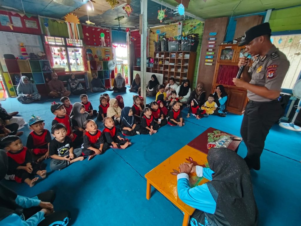 Melalui penjelasan Bhabinkamtibmas, anak-anak diajarkan pentingnya menjaga keamanan lingkungan serta mematuhi aturan dan norma sosial.