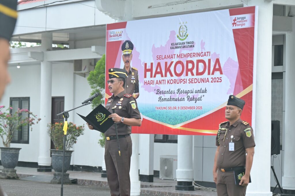 Selasa (9/12/2025) Kepala Kejaksaan Tinggi Kalimantan Utara, Yudi Indra Gunawan, SH.,MH bertindak langsung sebagai inspektur upacara dalam upacara puncak peringatan Hari Anti Korupsi Sedunia (Hakordia) Tahun 2025 yang diikuti oleh para Pejabat Utama dan seluruh staf pegawai Kejati Kaltara.