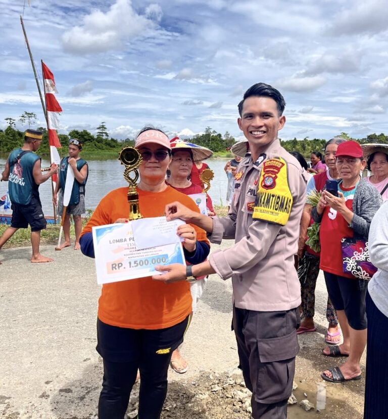 TANJUNG SELOR-Briptu Saripuddin selaku Bhabinkamtibmas Desa Jelarai Selor melaksanakan tugas pengamanan dalam rangka mendukung kelancaran dan keamanan Lomba Perahu Dayung