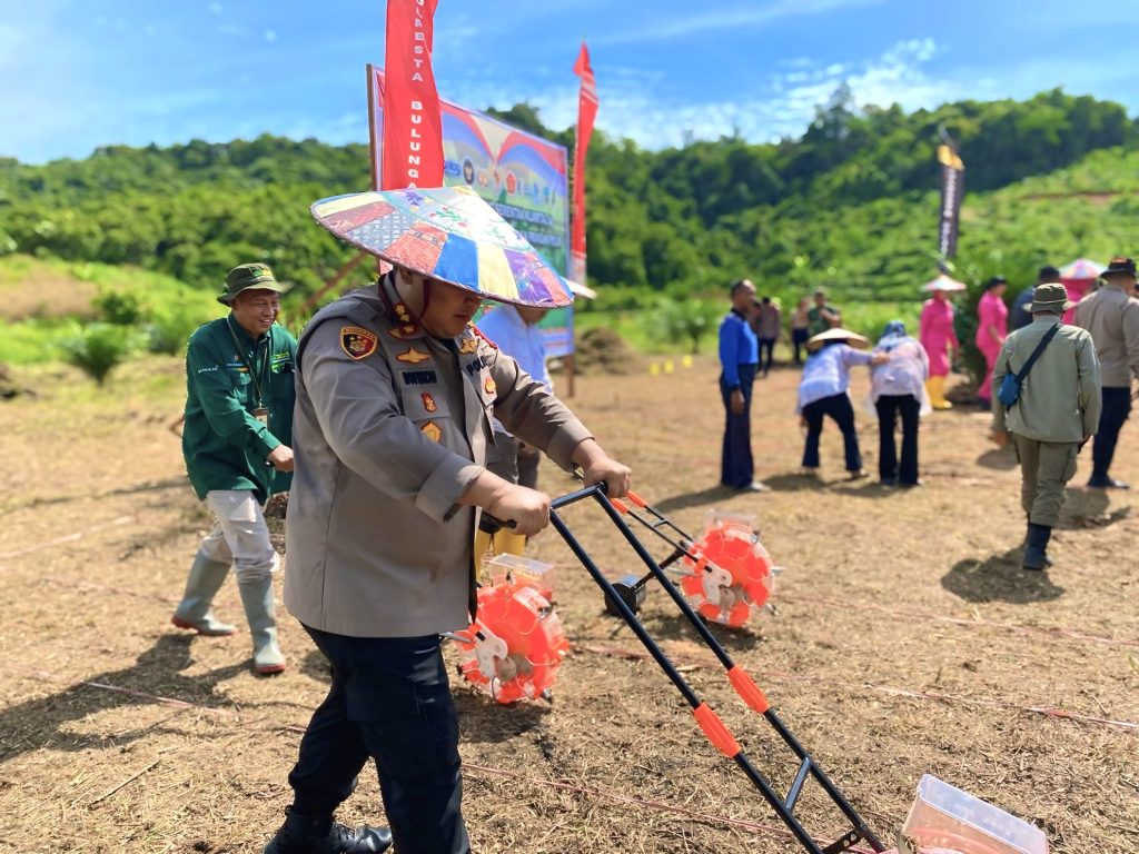 BORNEOKU.CO-Kombes Pol. Rofikoh Yunianto, S.I.K.,Kapolresta Bulungan beserta para Pejabat Utama (PJU) Polresta Bulungan, turut aktif dalam kegiatan penanaman jagung serentak Kuartal IV dan peresmian gudang ketahanan pangan Polri. Kegiatan yang berlangsung di Desa Antutan, Kecamatan Tanjung Palas, Kabupaten Bulungan, pada Rabu (8/10/2025), merupakan bagian dari dukungan nyata Polri terhadap program swasembada pangan nasional tahun 2025.