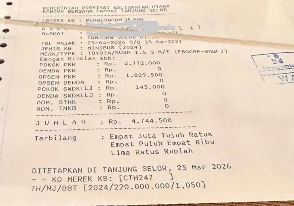 Pajak Kendaraan “Mencekik”, Warga Tanjung Selor Kaget Dari Rp3,2 Juta Melonjak Jadi Rp4,7 Juta!