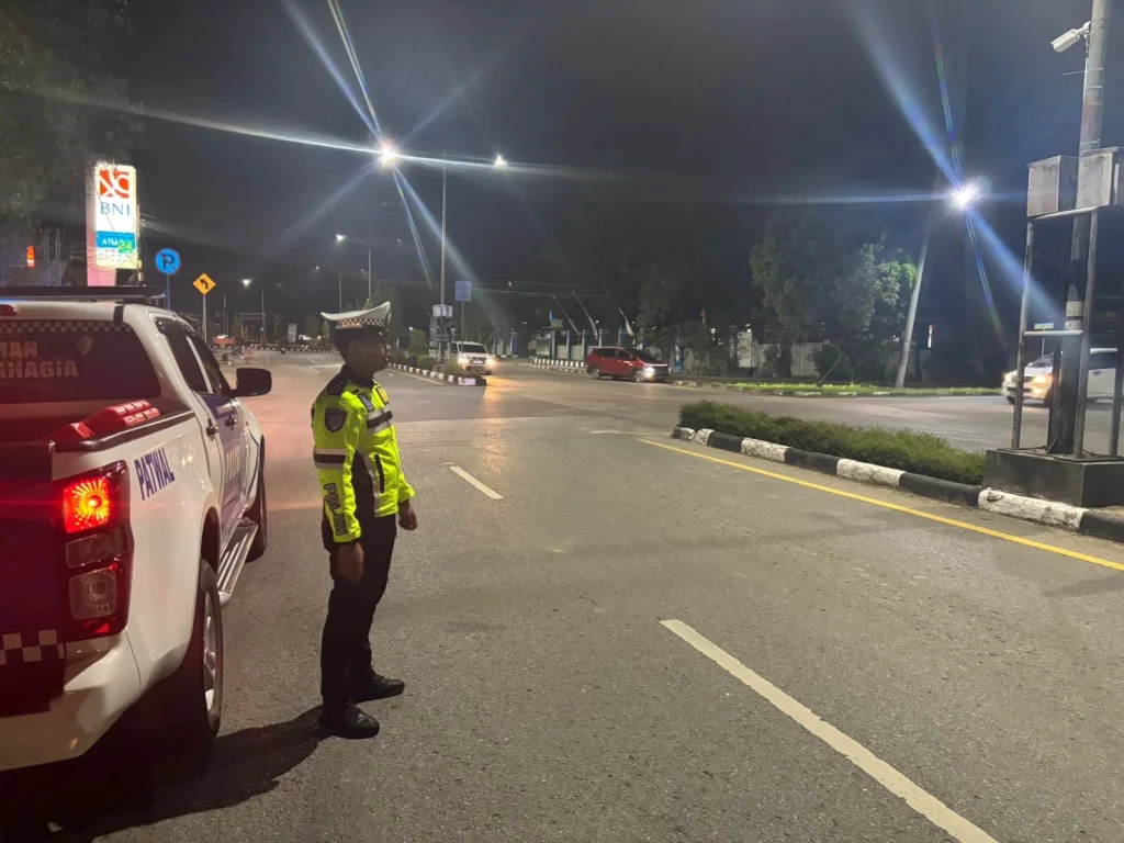 Dalam pelaksanaannya, petugas tidak hanya melakukan pemantauan, tetapi juga memberikan imbauan langsung kepada para pengguna jalan yang masih beraktivitas di malam hari.