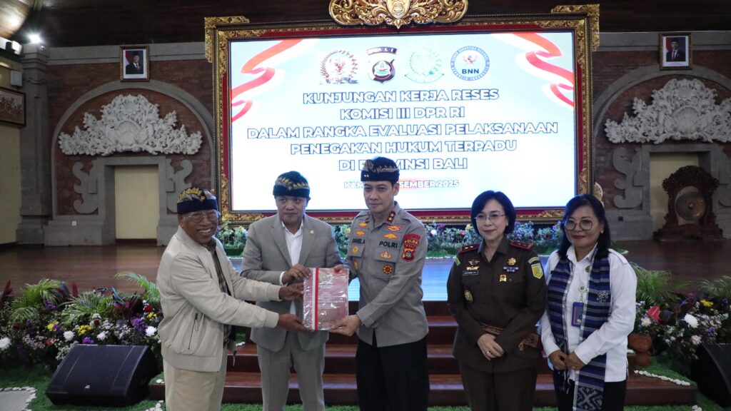 BORNEOKU.CO-Denpasar – Polda Bali menerima kunjungan kerja reses dari Komisi III DPR RI dalam rangka melakukan evaluasi komprehensif terhadap pelaksanaan penegakan hukum dan pengamanan terpadu di Provinsi Bali. Kegiatan berlangsung di Gedung Presisi Polda Bali, Kamis, (11/12/2025).