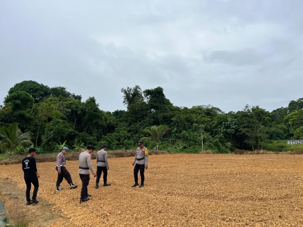 TANA TIDUNG – Personel Polsek Sesayap Hilir melaksanakan peninjauan langsung terhadap kesiapan lahan pertanian yang diproyeksikan untuk penanaman komoditas jagung.