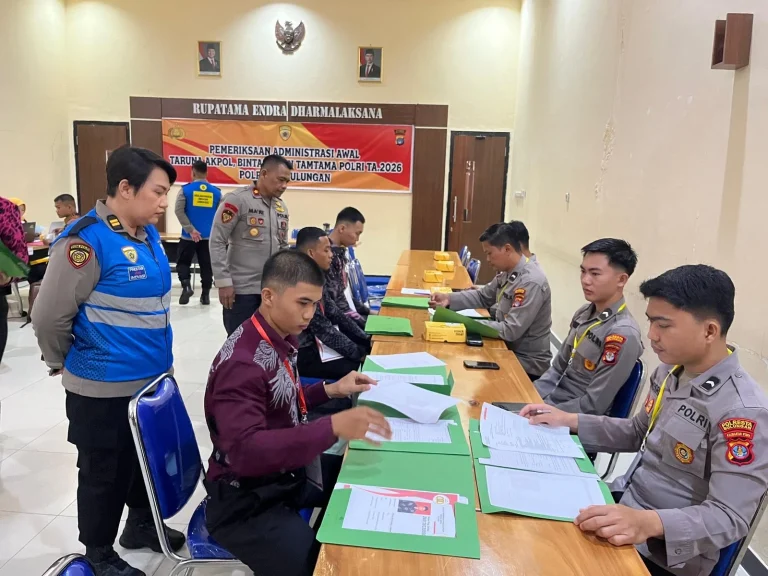 TANJUNG SELOR – Tahapan awal rekrutmen anggota Polri Tahun Anggaran 2026 mulai bergulir. Sebanyak puluhan peserta mengikuti pemeriksaan administrasi awal (Rikmin) penerimaan Taruna Akpol, Bintara, dan Tamtama di Polresta Bulungan, Selasa (7/4/2026).